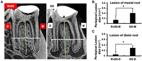 Siddiqui YD, Omori K, Ito T, Yamashiro K, Nakamura S, Okamoto K, Ono M, Yamamoto T, Van Dyke TE, Takashiba S. Resolvin D2 Induces Resolution of Periapical Inflammation and Promotes Healing of Periapical Lesions in Rat Periapical Periodontitis. Frontiers in Immunology 2019; 10 (article 307). doi: 10.3389/fimmu.2019.00307.